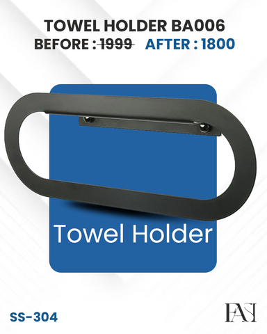 Add a touch of elegance and functionality to your bathroom with the BA006 Towel Holder. Crafted from premium Stainless Steel 304, it guarantees strength, durability, and resistance against rust and corrosion. Its sleek Matte Black finish brings a modern, minimalist look that enhances any bathroom décor.